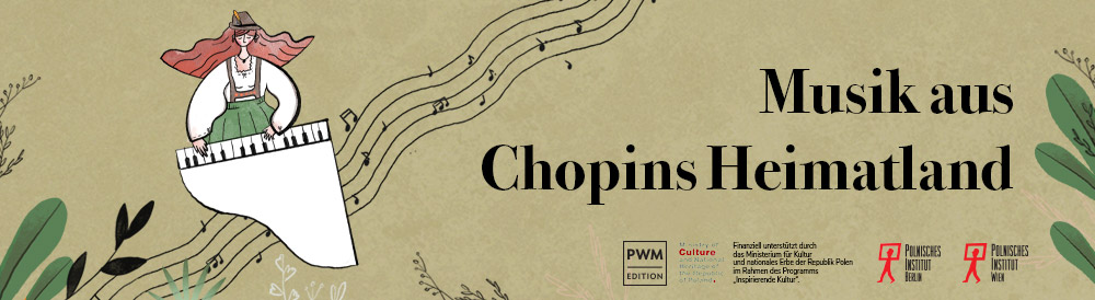 Zur Aufführung von Fryderyk Chopins Werken muss niemand überredet werden: Sein Werk bleibt die Visitenkarte der polnischen Klaviermusik in der Welt. Im Rahmen des international Projekts „Musik aus Chopins Heimatland“:, das sich an die Klavierspieler der Grund- und Mittelstufe, sowie an ihre Lehrer aus Italien, Frankreich, Großbritannien, Japan, Deutschland und Österreich wendet, möchten wir sie dazu verlocken, ihr Lehr- und Konzertrepertoire um die Titel polnischer Komponisten zu erweitern. Wir ermutigen Sie dazu, nach Werken von Ignacy Jan Paderewski, Stanisław Moniuszko, Karol Kurpiński, Maria Szymanowska, Wojciech Kilar, Tekla Bądarzewska und vielen anderen, weniger bekannten Komponisten zu greifen, deren Werke eine umfassende Lehr- und Konzertgrundlage für junge Klavierschüler/-innen darstellen.
