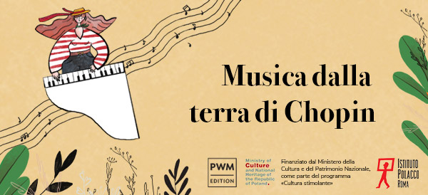 Il progetto “Musica dalla terra di Chopin” è finanziato dal Ministero della Cultura e del Patrimonio Nazionale polacco nell’ambito del programma “Cultura stimolante”.