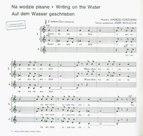 Study score does not authorise the copying and preparation of performance materials. In order to legally acquire choral scores, at a preferential price for the ensemble, please send an e-mail to: sales@pwm.com.pl