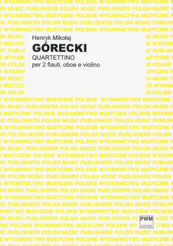Quartettino, one of Górecki's early compositions, was written when he was still a student at the State Higher Music School in Katowice. It was first performed in February 1958 during his public debutante's concert organized by the school authorities a high distinction for a student. This three-section piece, placed on the programme beside other works such as Toccata, Variations, Sonata for two violins, was distinguished by its unusual instrumentation: combination of two flutes, oboe and violin. Like the other pieces, the work not only charmed the experts of this kind of music, but also caused real amazement, as it revealed Górecki's excellent knowledge of new compositional techniques (e.g. dodecaphony), with which most Polish composers were still not acquainted.