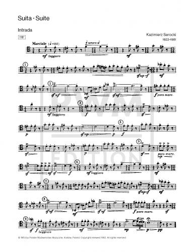 Serocki forged his Suite for four trombones from seven quite short movements alternating quick and slow tempi (as in Renaissance and Baroque suites). An Intrada referring to the early Baroque canzona, based on a lively rhythm and distinctive melody, is followed by a nostalgic Canon with a strictly imitated theme (at a minor third and a fifth) in the top three parts and a bottom part presenting its rhythmically augmented inversion. The central part of the Suite comprises a charmingly simple, homophonic and long-breathed Chorale, no doubt deliberately referring to the tradition of Beethoven’s ‘equali’ – all the parts in it are ‘equal’. The Chorale is sandwiched between an Interlude and an Intermezzo – movements played in a constant staccato, of a light and humorous character. The penultimate movement of the Suite is a dignified, archaic Arietta, which imitates the sound of tolling bells and employs a subtle echo effect. The work then closes with a breakneck, highly virtuosic Toccatina.