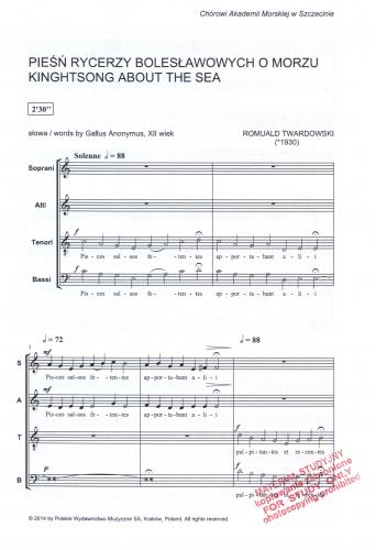 Study score does not authorise the copying and preparation of performance materials. In order to legally acquire choral scores, at a preferential price for the ensemble, please send an e-mail to: sales@pwm.com.pl