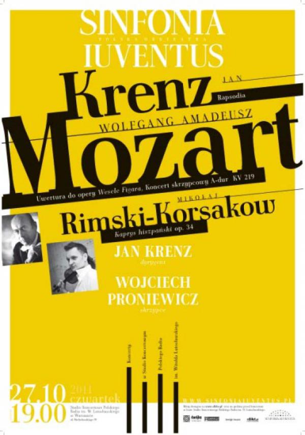 On 27 October the Polish Iuventus Sinfonia will play in the Polish Radio Concert Studio under the baton of Jan Krenz. The concert programme will include works by Mozart, Rimsky-Korsakov and the Maestro himself. In the programme:Wolfgang Amadeus Mozart - Overture to the opera The Marriage of Figaro