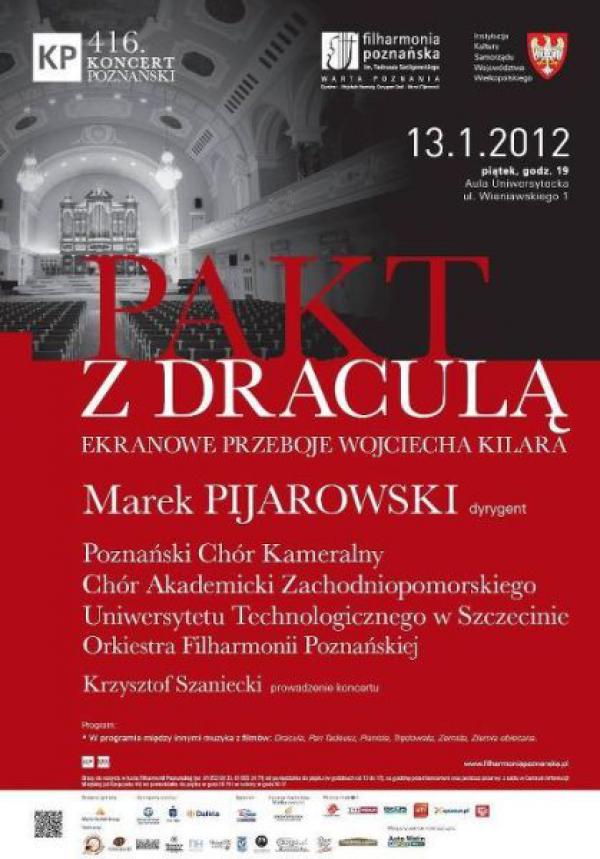 On January 13, 2012 during a concert at the Poznań Philharmonic called „Pakt z Draculą” (Pact with Dracula), film music hits by Wojciech Kilar will be heard. The orchestra, under the baton of Marek Pijarowski, as well as artists of the Poznań Chamber Choir and the Jan Szyrocki ZUT Academic Choir of Szczecin will perform the Waltzes from the film „Ziemia obiecane” and „Trędowata”, the suite from the film „Pan Tadeusz”, the „Mazur” from „Zemsta” and the theme of the film „The Pianist”. This year, Wojciech Kilar celebrates his eightieth birthday. The concert – as the organisers assure us - is Poznań Philharmonic’s first installment celebrating this anniversary.Most popular: