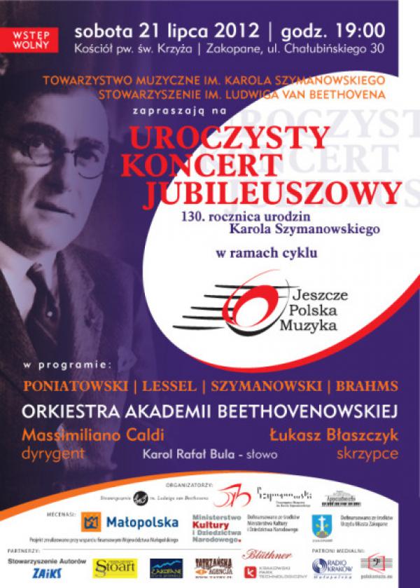 The Karol Szymanowski Society and the Beethoven Academy Orchestra working in collaboration with the Ludwig van Beethoven Association invites the residents of Zakopane to listen to an extraordinary symphonic concert to be held on 21 July 2012 at 7pm in the Holy Cross Church in Zakopane. The concert is part of the “Jeszcze polska muzyka” series presenting the most valuable, forgotten Polish symphonic works of the eighteenth and nineteenth centuries against a background of European masterpieces. The framework of the project, referred to in the title, is the preservation of Polish cultural heritage as an indicator of formation of national identity.Łukasz Błaszczyk (violin) and the Beethoven Academy Orchestra will take part in the concert on Saturday July 21 under the baton of Maestro Massimiliano Caldi. The artists will perform the works of Józef Michał Poniatowski, Franciszek Lessel, and Johannes Brahms, and on the occasion of the 130th anniversary of his birth, Karol Szymanowski’s Second Violin Concerto will be performed.