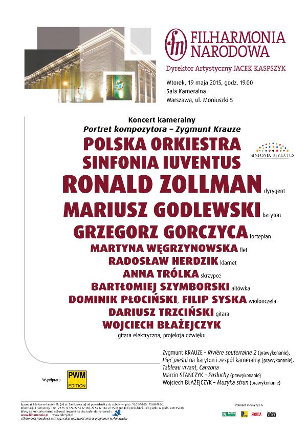 On 19 May, the National Philharmonic in Warsaw, Poland, will be the venue of the monographic concert: "Zygmunt Krauze - The Composer's Portrait", presenting the oeuvre of one of the most original Polish modern composers.