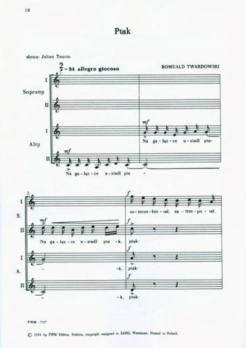 Study score does not authorise the copying and preparation of performance materials. In order to legally acquire choral scores, at a preferential price for the ensemble, please send an e-mail to: sales@pwm.com.pl