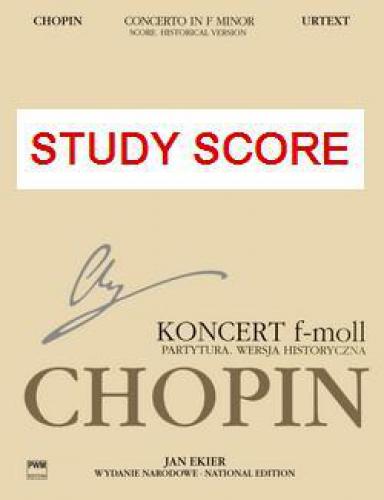 The present score is composed of parts from the first edition. The concert version of the score, recreated by taking into consideration also other sources which present Chopin`s intention, constitutes volume 34 B VIIIb. The Concerto in an authentic arrangement for one piano makes up volume 14 A XIIIb. The version with the second piano, containing the reduction of the orchestra part, forms volume 31 B VIb. The historical scores are purer with regard to editorial interference, yet contaminated by the involvement in the sources of foreign hands. The historical scores show that which, for various reasons, Chopin agreed to have published. The miniature version of the National Edition does not contain source commentary or performance notes.