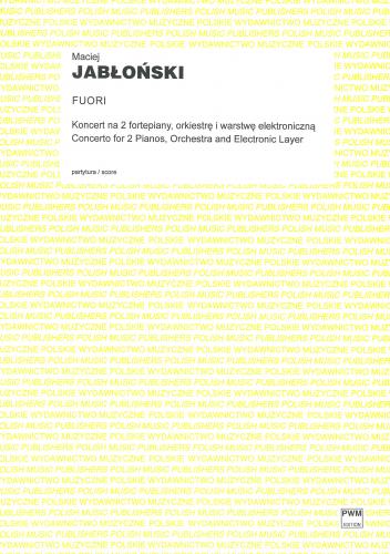 ''Fuori'' is Maciej Jabłoński's debut with PWM. The creator explains the title (literally ''outside'') as ''a musical impression on the extraction of the real me from beneath the layers of masks, hypocricies and self-delusions. In the sound layer the dialogue of the solo pianos is like the bloodstream in an organsm of powerful sound, composed of dense, ubiquitous, colourful textures. There are extreme states of atomized expression, trembling anxiety after deep contemplation.'' The piece had its premiere on March 26, 2011 in Katowice during the fourth Festival of Premieres. It was performed by the artists of the Lutosławski Piano Duo (Emilia Sitarz and Bartłomiej Wąsik) and the Polish National Radio Symphony Orchestra conducted by José Maria Florencio. According to Ewa Schreiber the piece was ''a superb combination of the expanded sound of the orchestra, two pianos and and electronic layer. In this half-hour composition the orchestra creates one coherent body. Sounds of individual instruments are isolated from time to time, only to melt after a moment in a larger group. The richness of the sound was decided not only by good instrumentation (including large wind and percussion groups), but also by various sound effects, articulation and detuning the instruments, most audible in the pianos. In this particular aura one loses a sense of reality. The electronic layer sometimes sounds like instruments, and instruments, retuned and reinforced by the speakers sound very strange. The work is intense and restless. Within it there are distinct phases of tension and relaxation of the density and accumulation of sound, stagnation, rapid changes and inhibition of the action. In agreement with the composer's intention, the work arose as a study of the endless internal struggle, necessary for the development and exploration of truth about himself.'' (Ewa Schreiber, Weekend prawykonań, Ruch Muzyczny nr 9, 2011)