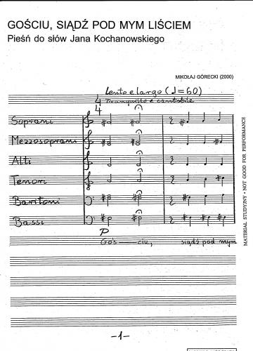 The Guest, Sit under My Leaf. The Song to Words by Jan Kochanowski Op. 14