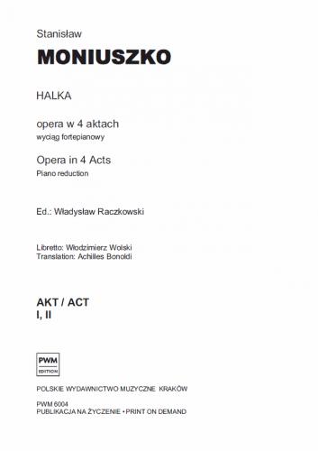 Opera in 4 Acts (Warsaw Version), piano reduction