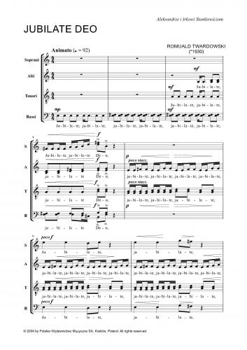 Composed in 2001, ''Jubilate Deo'', like the earlier ''Lauda Sion'', or ''Regina coeli'', represents the ''concert'' trend in the composer's sacred music with its clear and strongly differentiated rhythms, contrasting dynamics and colourful texture, full of fresh ideas.