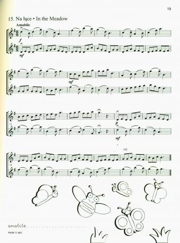 The present collection of duets for violin was written with the thought of shaping the musical awareness of young musicians in that difficult area of performance which is chamber music. My aim was not, however, only to develop pupils ear and intellect, but above all to gift them with the pleasure of joint music-making. The duets have picturesque titles intended to contribute positively to violinists imagination. They also differ in length from short, 8-measure pieces accessible even to first-graders, to longer ones which can be performed by junior or senior high school students. For the most part, they are written in ABA1 form. The specially planned and prepared construction provides the opportunity for both the first and the second violin to display their abilities. In all of the pieces presented, each of the performers sometimes carries the leading voice, sometimes the accompaniment. Additionally, at the beginning of the collection, I have placed a Glossary of Musical Expressions (pertaining to dynamics, tempo and expression) which the pupil should utilize by writing in the explanation of a newly-acquired term on the designated (dotted) line beneath the music. On the other hand, as a reward for performing a piece, the pupil can color in the illustrations associated with specific titles, placed beneath the duets. I wish all players joy in using A Little Something: Duets for Violin!