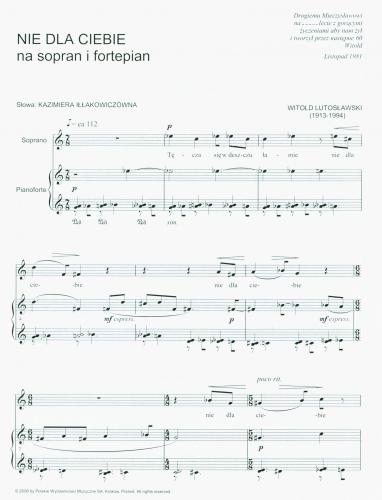 The song to Kazimiera Iłłakowiczównas poem entitled perversely Not for You is a birthday gift offered as a token of friendship to Mieczysław Tomaszewski, as attested by the handwritten dedication. It was composed as a response to a commission by the staff members of the Department of Analysis and Interpretation of the Academy of Music in Cracow, who approached several composer-friends with a request to write a song to lend lustre to the sixtieth jubilee of their mentor.