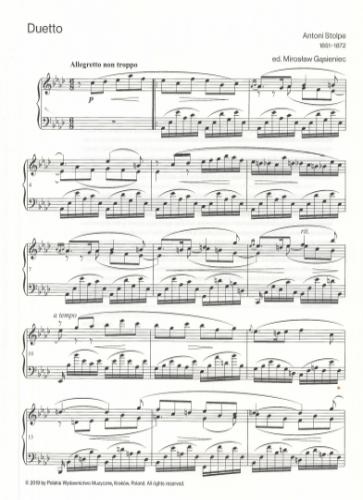 The piano works of Antoni Stolpe (1851–1872) place this young composer and pianist in the same rank as such talented Polish composers of the second half of the nineteenth century as Juliusz Zarębski and Ignacy Jan Paderewski. This collection is the first ever presentation of works which Stolpe composed during the Warsaw period in his life, before he left, in June 1869, to study music in Berlin. This edition was based on the manuscripts of Stolpe’s piano works held in the Jagiellonian Library in Cracow, which are lacking exact dates for particular compositions.
