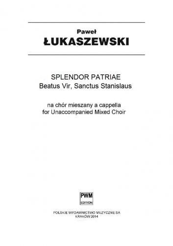 Splendor Patriae. Beatus Vir, Sanctus Slanislaus