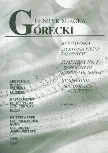 The third movement (Lento cantabile semplice) is a kind of emotional crescendo arising from the variational elaboration of a folk tune from the Opole region, preserved in Adolf Dygaczs collection. The succeeding sequences of the sopranos melody, reinforced with flutes, clarinets and horns, are accompanied by progressions of repeated chords in strings derived from the opening fragment of Chopins Mazurka Op. 1, No. 4 and tinged with drops of sound from piano and harp. This homogeneous stream of music, marked by slight changes in pace, metre and dynamics, and suffused by the prevailing minor mood (A minor followed by E minor), is eventually crowned with a prolonged cadence in major. This A major chord, placed at the end of the three Sorrowful Songs, has as it does in medieval, baroque and renaissance music some symbolic connotations, implying, as it were, a holy chord, the eternal flame of Faith.