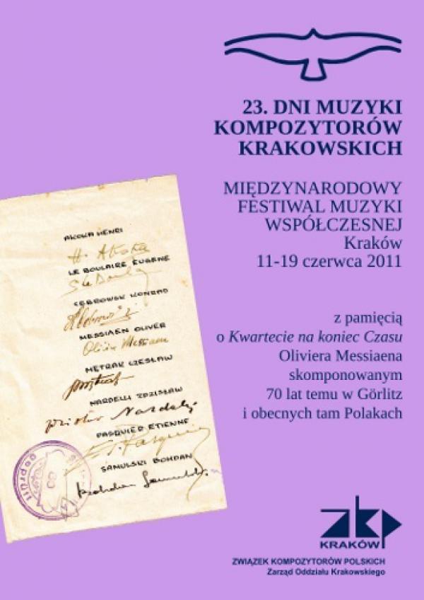 W dniach 11-19 czerwca odbędą się w Krakowie już po raz 23. Dni Muzyki Kompozytorów Krakowskich. W ramach tego festiwalu 19 czerwca będzie miało miejsce spotkanie zatytułowane "Matinée w 100. rocznicę urodzin Stefana Kisielewskiego", połączone z promocją książki Małgorzaty Gąsiorowskiej „Kisielewski” i koncertem utworów kompozytora. 23. Międzynarodowe Dni Muzyki Kompozytorów Krakowskich rozpoczynają się już w najbliższą sobotę. Na jedenastu koncertach zabrzmi muzyka krakowskich twórców, odbędą się prelekcje i spotkania.Posłuchać będzie można utworów takich kompozytorów jak Wojciech Widłak, Marcel Chyrzyński, Juliusz Łuciuk, Zbigniew Bargielski czy Jerzy Kaszycki, który podczas festiwalu obchodził będzie jubileusz 85-lecia.