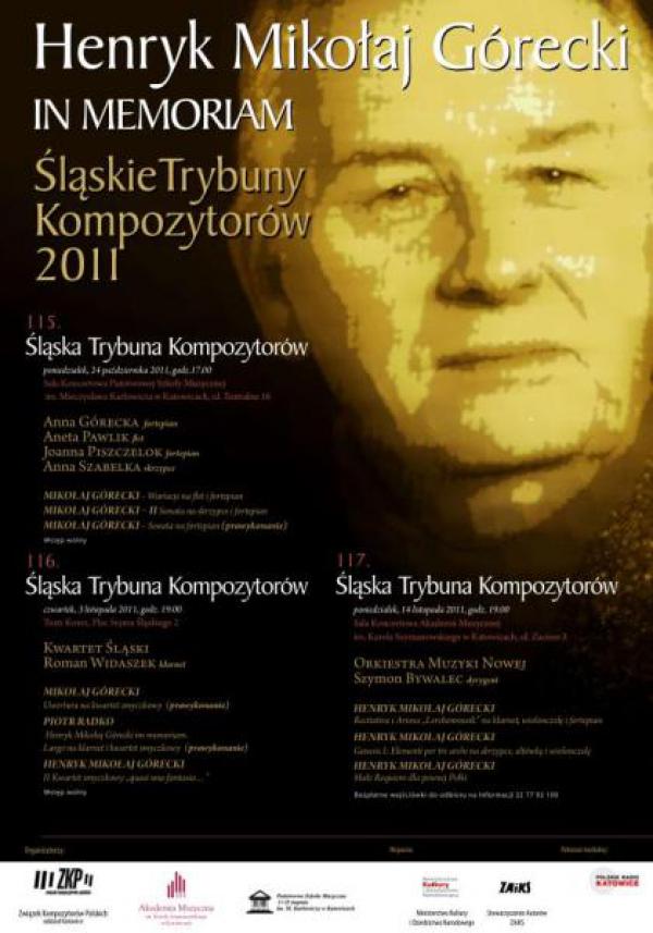 Już dzisiaj o godz. 17.00 w Katowicach odbędzie się koncert w ramach „Śląskich Trybun Kompozytorów”, na którym wykonane zostaną utwory Mikołaja Góreckiego. Koncert odbędzie się w Sali Koncertowej Państwowej Szkoły Muzycznej im. M. Karłowicza w Katowicach o godzinie 17.00.W programie koncertu znajdują się następujące utwory: