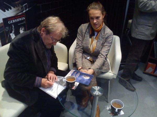 Adam Makowicz był gościem stoiska nr A22 w niedzielne wczesne popołudnie. Wraz z Markiem Straszem - autorem rozmów z Mistrzem - przybyli, by spotkać się z melomanami i czytelnikami nowej książki wydanej przez PWM pt. "Grać pierwszy fortepian". Pan Adam rozdał niezliczoną liczbę autografów, pozował do wielu zdjęć i udzielił kilku wywiadów. Zapraszał na swoje koncerty w Krakowie, Warszawie, Rybniku i Kaliszu. O szczegółach trasy koncertowej Adama Makowicza można dowiedzieć się więcej tutaj. Zachęcamy także do zapoznania się z dyskografią pianisty i jednocześnie informujemy, iż jego płyty można kupić tylko w naszym sklepie internetowym oraz w księgarni muzycznej PWM.Do zobaczenia na Targach w przyszłym roku!