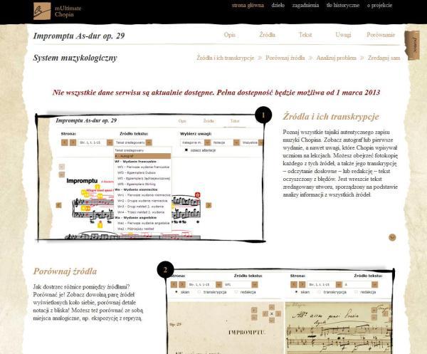 Już za niecałe dwa tygodnie, 1 marca, ruszy portal mUltimate Chopin, poświęcony wszystkim dostępnym źródłom Chopinowskim. Umożliwi on m.in. przeglądanie, analizowanie i porównywanie zdigitalizowanych źródeł. Użytkownicy będą mieli również dostęp do komentarzy, dotyczących wszystkich problematycznych miejsc w badanym fragmencie tekstu nutowego. Aplikacja pozwala na przeglądanie i porównywanie różnych wersji utworów Chopina, w tym rękopisy i wydania drukowane.Jak powiedział Paweł Kamiński, współredaktor Wydania Narodowego Dzieł wszystkich Fryderyka Chopina, "Taka baza danych pozwala stwierdzić, jakiego rodzaju błędy popełniono w kolejnych wydaniach, jakie błędy popełniali kolejni kopiści i sam Chopin".