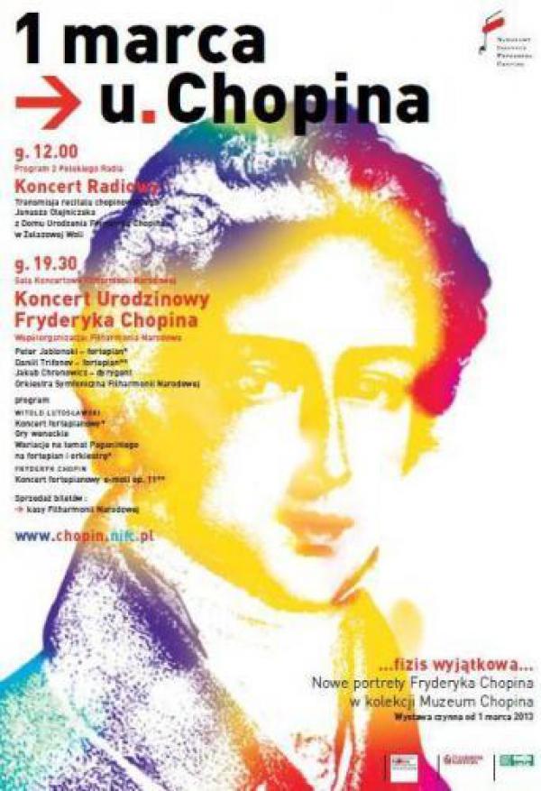 - godz. 19:30, Sala Koncertowa Filharmonii Narodowej – Koncert Urodzinowy Fryderyka Chopina. W programie znalazły się utwory: "Koncert fortepianowy e-moll" Chopina, który wykona Daniil Trifonov z towarzyszeniem Orkiestry Symfonicznej Filharmonii Narodowej oraz utwory Witolda Lutosławskiego: "Koncert fortepianowy", "Gry weneckie" i "Wariacje na temat Paganiniego" – w tych utworach usłyszymy Orkiestrę Symfoniczną Filharmonii Narodowej oraz Patera Jablonskiego w partiach fortepianu.