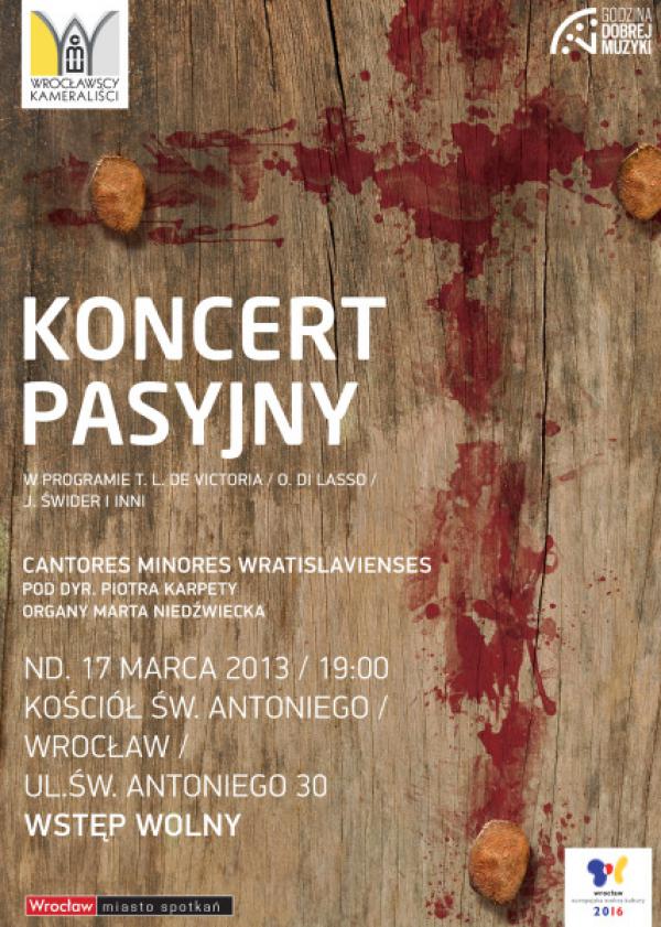 17 marca 2013 roku w parafii p.w. św. Mikołaja we Wrocławiu odbędzie się koncert chóru kameralnego Cantores Minores Wratislavienses. Program koncertu złożony jest z utworów religijnych renesansu, baroku i XX wieku. Zabrzmią polifoniczne motety twórców włoskich (A. Lotti, Q. Gasparini), hiszpańskich (T. L. de Victoria), niemieckich oraz polskich (H. M. Górecki, W. Kilar, J. Świder). Na organach zagra Marta Niedźwiecka, będzie też prezentacja multimedialna.Program: