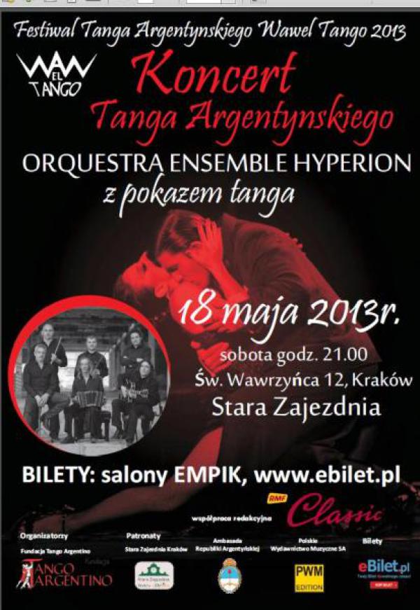 W dniach 16-19 maja w Krakowie usłyszeć i obejrzeć będzie można występy artystów zaproszonych na Wawel Tango – festiwal tanga argentyńskiego. Jeszcze przed rozpoczęciem festiwalu odbędą się spotkania:12.05.2013, niedziela, godz. 16.00