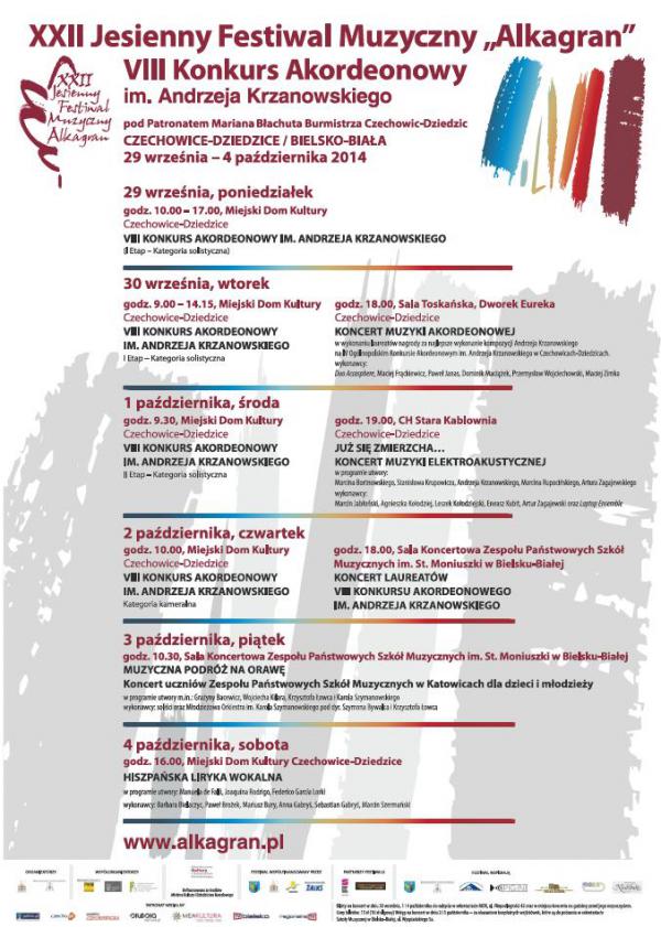 W dniach 29 września – 4 października w Czechowicach-Dziedzicach i Bielsku-Białej odbywa się XXII Jesienny Festiwal Muzyczny Alkagran 2014 połączony z VIII Konkursem Akordeonowym im. Andrzeja Krzanowskiego.