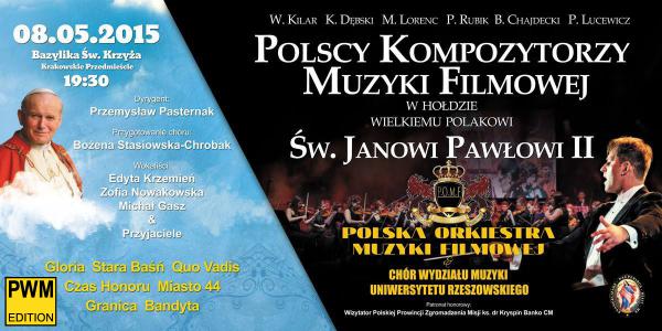 8 maja w Bazylice św. Krzyża w Warszawie odbędzie się koncert „Polscy kompozytorzy muzyki filmowej w hołdzie wielkiemu Polakowi św. Janowi Pawłowi II”, który wykona Polska Orkiestra Muzyki Filmowej pod dyrekcją ks. Przemysława Pasternaka.