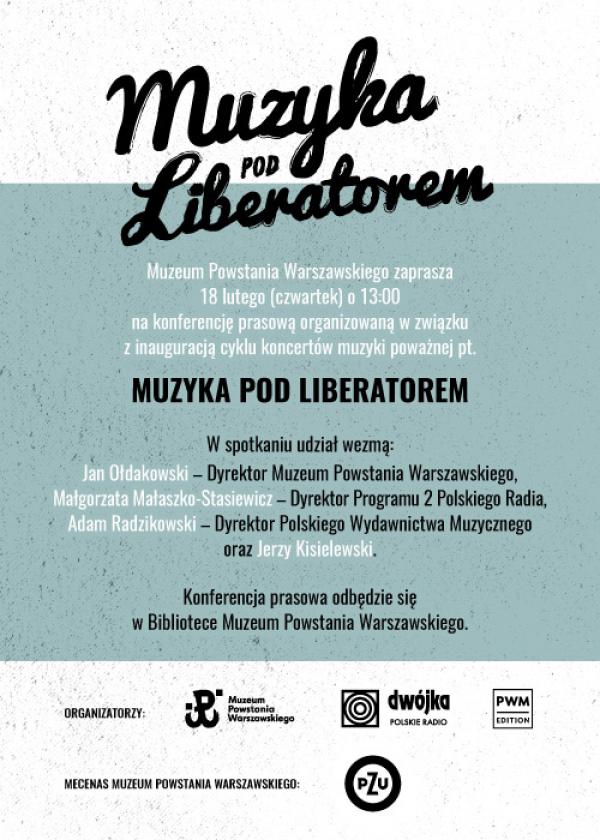W czwartek, 18 lutego, o godzinie 13:00 w Bibliotece Muzeum Powstania Warszawskiego (ul. Grzybowska 79, Warszawa) odbędzie się konferencja prasowa związana z inauguracją cyklu koncertów muzyki poważnej pt. „Muzyka pod Liberatorem”.