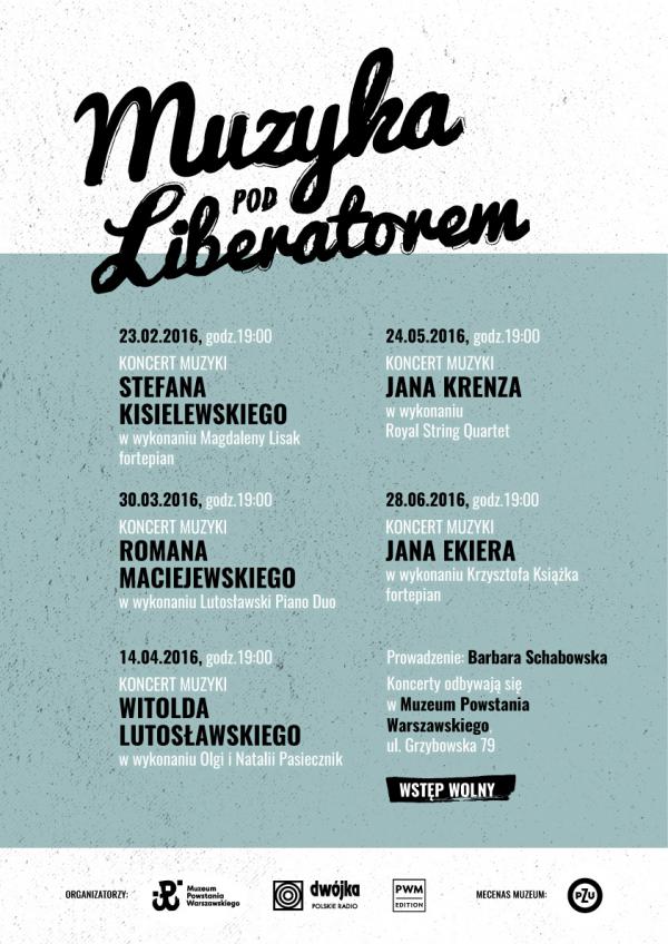 Twórczość kompozytorów związanych z Warszawą prezentowana będzie w tym roku podczas cyklu koncertów pt. „Muzyka pod Liberatorem”. Bohaterami kolejnych spotkań będą najwybitniejsi polscy twórcy muzyki współczesnej, których losy, często tragicznie, splatały się z historią stolicy.