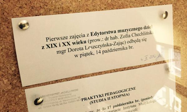 Z przyjemnością informujemy, że 14 października w Instytucie Muzykologii Uniwersytetu Jagiellońskiego rozpoczyna się kurs pt. „Edytorstwo muzyczne dzieł z XIX i XX wieku”.