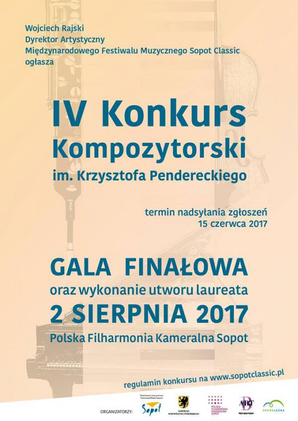 Konkurs jest wydarzeniem towarzyszącym Międzynarodowego Festiwalu Muzycznego Sopot Classic. Nagrodzone kompozycje usłyszymy podczas Gali Finałowej konkursu już 2 sierpnia o godz. 19.00 w Sali Koncertowej Polskiej Filharmonii Kameralnej Sopot.