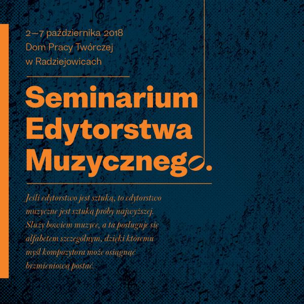 Jeśli edytorstwo jest sztuką, to edytorstwo muzyczne jest sztuką próby najwyższej. Służy bowiem muzyce, a ta posługuje się alfabetem szczególnym, dzięki któremu myśl kompozytora może osiągnąć brzmieniową postać. Z przyjemnością ogłaszamy trzecią edycję Seminarium Edytorstwa Muzycznego, które odbędzie się w Radziejowicach w dniach 2−7 października 2018 roku.