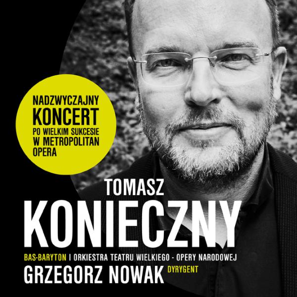 Po sukcesie w Metropolitan Opera, 6 czerwca, Tomasz Konieczny wystąpi na scenie Teatru Wielkiego - Opery Narodowej, wykonując najsłynniejsze pieśni Moniuszki w wersji symfonicznej. To jedyny koncert w Roku Moniuszki z takim programem!