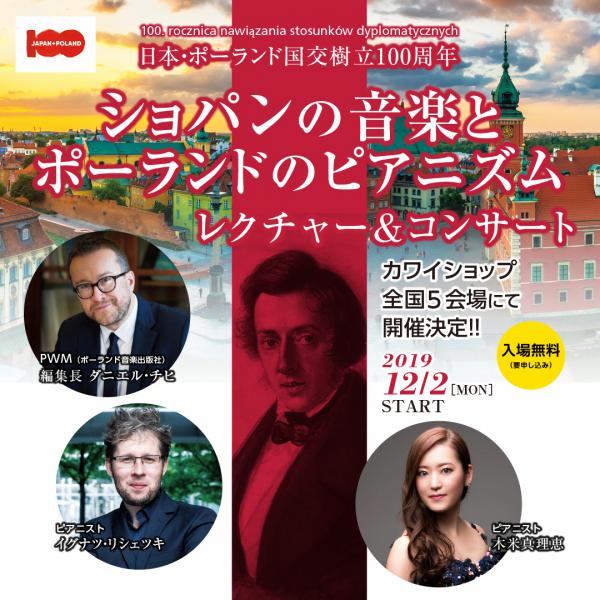 W ramach cyklu seminariów odbywających się kolejno w Hiroszimie (2 grudnia), Sendai (3 grudnia), Nagoyi (4 grudnia), Osace (5 grudnia) i Tokio (6 grudnia), obejmujących warsztaty oraz recitale, błyskotliwi pianiści młodego pokolenia – Marie Kiyone oraz Ignacy Lisiecki przybliżą najpiękniejsze miniatury polskiej literatury fortepianowej wydane przez Polskie Wydawnictwo Muzyczne w ramach serii „Muzyka z kraju Chopina”. Uczestnicy spotkań będą mieli okazję prześledzić rolę fortepianu w kształtowaniu historii muzyki polskiej dzięki prelekcji dyrektora – redaktora naczelnego Polskiego Wydawnictwa Muzycznego dra Daniela Cichego. Wszystko z wykorzystaniem dedykowanych materiałów audiowizualnych.