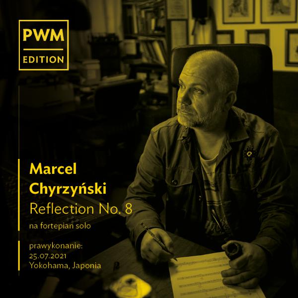 „W sierpniu 2020 roku miałem przyjemność wykonać na recitalu w Japonii inspirowany poezją japońską Farewell pana Marcela Chyrzyńskiego na wiolonczelę i fortepian”, wspomina Ignacy Lisiecki. „Po tym koncercie spotkałem się z wieloma komentarzami japońskiej publiczności, która podkreślała, jak bardzo kompozytor rozumie i potrafi autentycznie oddać dźwiękiem tak trudny do uchwycenia idiom kultury japońskiej, przełożony na swój indywidualny język muzyczny. Jest mi niezmiernie miło, że tym razem będzie to prawykonanie utworu, który kompozytor zdecydował się dedykować wykonawcy. Jest to również wielkie zobowiązanie dla mnie. Reflection No. 8 to kompozycja, która od pierwszego kontaktu intryguje nastrojem kontemplacji, niepokoju, a zarazem jest w jej harmonii zawarta chęć rozładowania tych wątpliwości i znalezienia jakiejś formy odprężenia, ukojenia, a więc poszukiwanie stanu zen, czyli filozofii tak bliskiej kulturze Japonii i samemu kompozytorowi”, dodaje pianista.