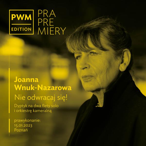 Joanna Wnuk-Nazarowa jest jedną z najaktywniejszych polskich kompozytorek swojego pokolenia. Od czasu premiery opery Wanda opartej na misterium Cypriana Kamila Norwida w 2020 roku, które było jednym z najważniejszych wydarzeń muzycznych w roku Wieszcza, jej nazwisko coraz częściej pojawia się na koncertowych afiszach. Przed nami prawykonanie Nie odwracaj się! Dyptyku na dwa flety solo i orkiestrę kameralną, który jest najnowszym utworem kompozytorki.