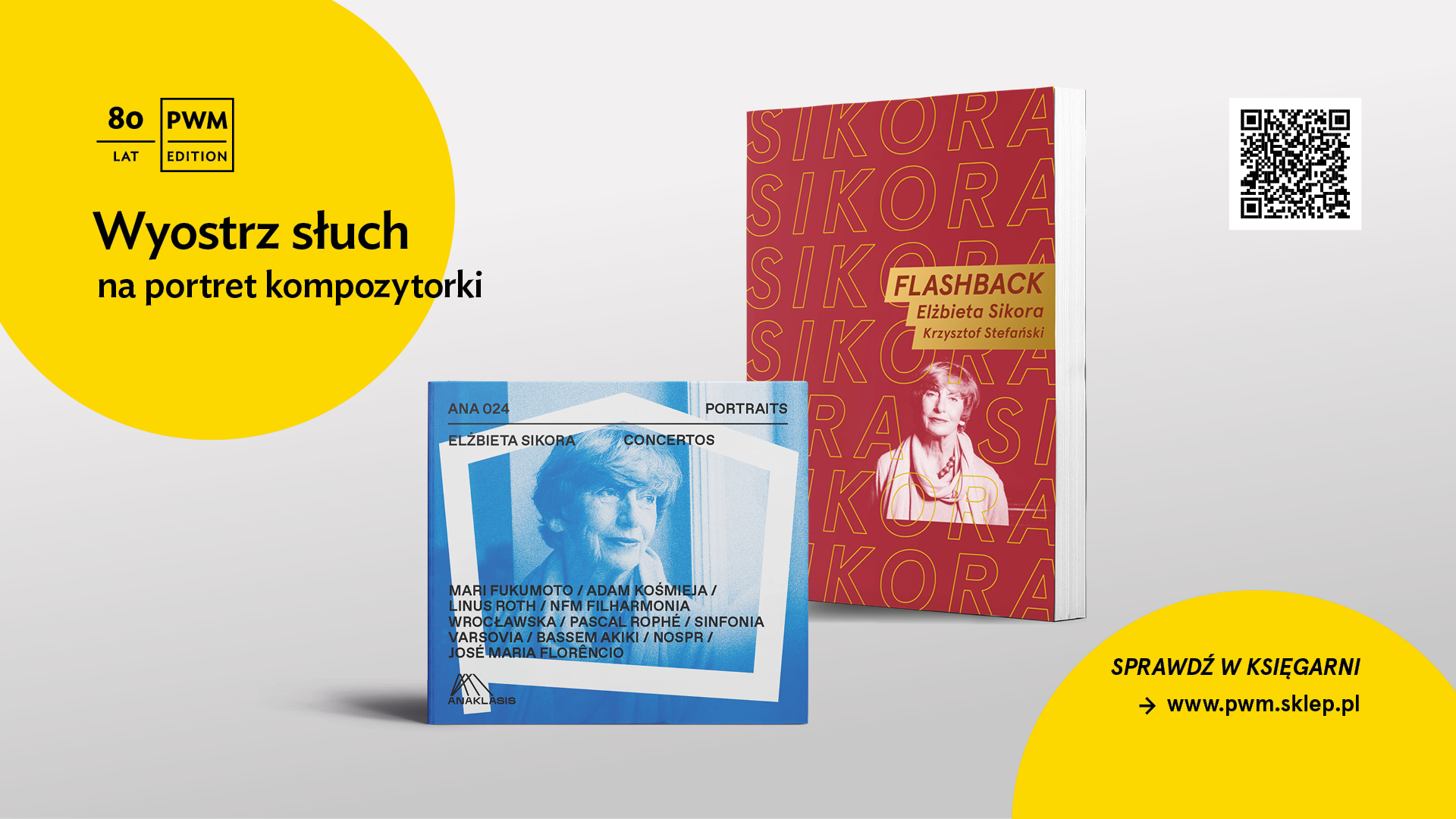Ciekawe? Zajrzyj po więcej! W grudniu książkę Flashback kupisz w księgarni PWM w specjalnej, promocyjnej cenie. A z muzyką Elżbiety Sikory możesz zapoznać się m.in. na płycie CONCERTOS, wydanej przez ANAKLASIS pod numerem ANA 024.