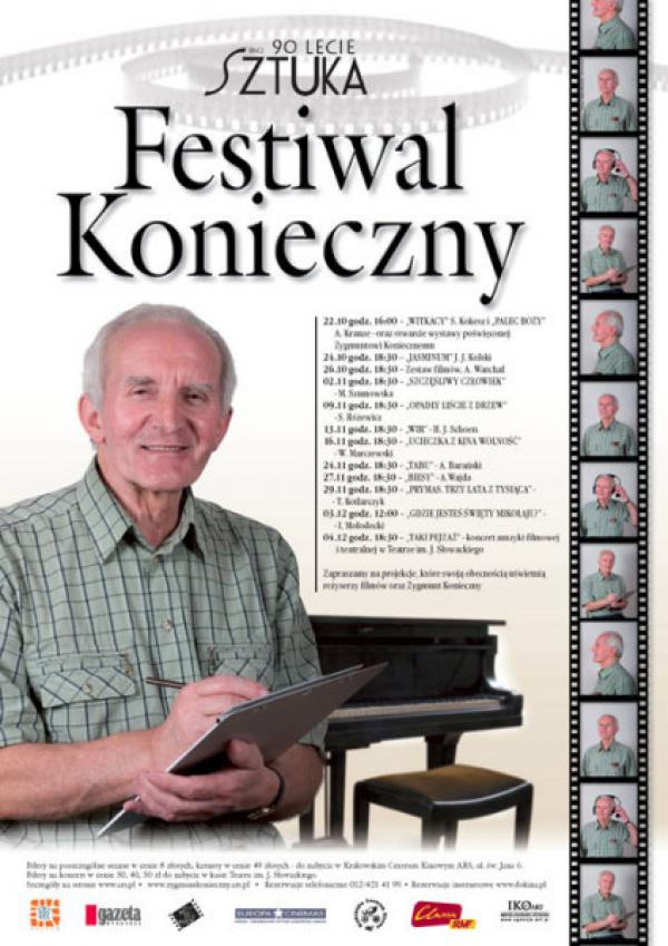 Kraków, 22.10 - 4.12.200622 października rozpoczął się w Krakowie Festiwal Zygmunta Koniecznego pod nazwą "Festiwal Konieczny", zorganizowany przez Agencję Artystyczną IKO - ART i Krakowskie Centrum Kinowe ARS. Okazją są zbliżające się 70-te urodziny kompozytora. W ramach Festiwalu odbędą się pokazy filmów z muzyką Zygmunta Koniecznego oraz koncert muzyki filmowej i teatralnej.