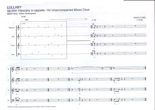 Partytura studyjna nie upoważnia do kopiowania i sporządzania głosów wykonawczych. W celu legalnego nabycia większej ilości partytur chóralnych, po preferencyjnych cenach dla zespołu, prosimy wysłać e-mail pod adres: handel@pwm.com.pl