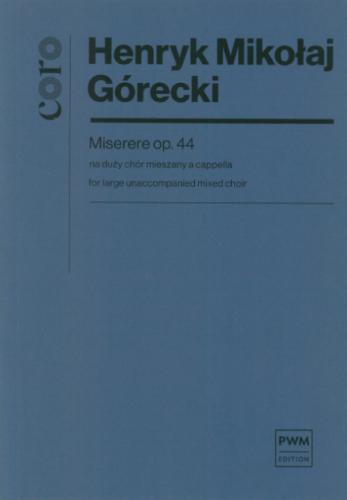 Miserere na duży chór mieszany a cappella jest reakcją Góreckiego na wydarzenie z dnia 19 III 1981 roku, mające miejsce w Bydgoszczy. W tym dniu doszło do starcia przedstawicieli Solidarności Wiejskiej z około 200 milicjantami, w wyniku którego wielu związkowców zostało rannych, a kilka miesięcy później został ogłoszony stan wojenny w kraju. Miserere jest właśnie muzycznym manifestem Góreckiego (jedynym jawnym, na który pozwolił sobie kompozytor w życiu), wymierzonym przeciwko reżimowi rządu polskiego lat 80. Zrozumiałe jest zatem, że utwór doczekał się publicznej prezentacji dopiero sześć lat po powstaniu. Zupełnie wyjątkowe jest tutaj potraktowanie chóru, którego każdy z ośmiu głosów (2S 2A 2T 2B; minimum 120 wykonwaców) dysponuje własną linią melodyczną, znacznie urozmaicaną w toku przebiegu kompozycji. Ciekawe jest również, że cały utwór pozostaje w jednym polu harmonicznym, którego szkielet stanowi ciąg tercji diatonicznych (od A w II basach do a1 w II sopranach). Warstwa słowna ogranicza się zaledwie do pięciu, ale bardzo wymownych słów: Domine Deus noster, Miserere Nobis. Paradoksalnie jednak ta oszczędność słowna połączona z ewolucją formalną i brzmieniową dzieła, wymaga mistrzowskiego wykonania. gdyż Miserere to utwór o potężnym ładunku emocjonalnym. Zdaniem Ivana Moodyego, autora artykułu o tej właśnie kompozycji Góreckiego opublikowanego w Musical Times (1992), muzyka Miserere obdarzona jest zdumiewającym w najwyższym stopniu napięciem, rozbudowywana aż do niemal niemożliwych do zniesienia granic intensywności, po czym wyzwolona z napięcia (...) w atmosferze medytacyjnego spokoju.