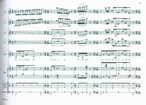 ''Zaawansowana sonorystycznie kompozycja przeznaczona jest na głos sopranowy (lub mezzosopranowy), zespół kameralny i elektronikę. Napisana została do monologu Samuela Becketta, składającego się z szeregu niepowiązanych z sobą zdań, opisujących historię starej kobiety, którą w przeszłości dotknęła trauma. Beckett zaznaczył, że tekst ma być wykonywany w zaciemnionej sali, ze światłem skupionym jedynie na ustach aktorki. Agata Zubel, respektując ten zapis, przygotowała towarzyszący wykonaniu film, na którym widać jej usta, wypowiadające/śpiewające poszczególne fragmenty tekstu. W utworze pojawia się mnóstwo kapitalnych momentów, gdy zmultiplikowane dźwięki wydawane przez kompozytorkę tworzą tajemniczo szepczące chóry (filmowe usta też pojawiają się w zwielokrotnionym obrazie), nad które wynosi się jasno brzmiący na żywo głos kompozytorki. Utwór o niesamowitej, magicznej aurze.'' (Ada Ginał-Zwolińska, Sacrum Profanum 2012)
