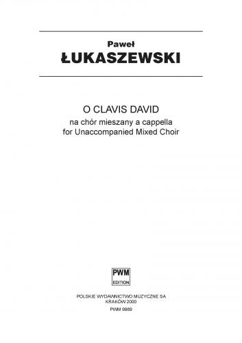 ''O Clavis David'' należy do cyklu Antiphonae, powstałego na przestrzeni lat 1995 - 1999. Ta, ponad 40-minutowa symfonia chóralna charakteryzuje się wysokim stopniem trudności wykonawczej, zagęszczoną fakturą i wysoce zindywidualizowanym językiem dźwiękowym, wyróżniającym się pewnymi rozwiązaniami melodycznymi, harmonicznymi, rytmicznymi i kolorystycznymi przy jednoczesnym pozostaniu w quasi tonalnej materii, zwanej powszechnie w dzisiejszych czasach neotonalną. Każda antyfona posiada swoje własne cechy stylistyczne, jednakże w całości można doszukać się licznych podobieństw, przewijających się przez poszczególne utwory wątków przewodnich i cech wspólnych typowych dla całego cyklu, np.: ulegające wyciszeniu, wygaśnięciu lub zawieszeniu zakończenia, odznaczająca się przeplataniem głównych wątków odcinkowość, charakterystyczne motywy (np. skok kwinty lub seksty w górę), przypominanie w zakończeniu początkowego tematu, burdonowe kwinty w głosach męskich, trójfazowa ewolucja motywiczna, polegająca na realizowaniu linii melodycznej zawsze w trzech fazach rozwojowych, z których druga jest powtórzeniem pierwszej, a trzecia jej rozwinięciem. W Kościele Katolickim antyfony ''O'' śpiewa się w ostatnim tygodniu Adwentu: ''W miarę zbliżania się Bożego Narodzenia, Kościół święty z coraz to gorętszym pragnieniem oczekuje na przyjście Zbawiciela. Począwszy od 17 grudnia śpiewa przy Magnificat nieszpornym Wielkie Antyfony zwane również Antyfonami O, od litery zaczynającej każdą z nich. Są one płomiennym wołaniem do Mesjasza, a zarazem przedziwnie określają Jego właściwości i chwalebne Imiona.'' (Mszał Rzymski, 1956). Treść omawianych antyfon stanowią żarliwe zawołania do Mesjasza, zawierające element wysławiający Boga pod jego wieloma imionami, a także wyrażają oczekiwanie i tęsknotę za Mesjaszem.