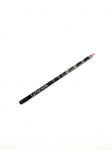 Elegancki i ponadczasowy czarny ołówek z gumką do mazania i autografem Witolda Lutosławskiego oraz fragmentem nut kompozytora.