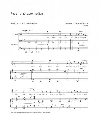 Kompozycja "Patrz morze" do słów Zbigniewa Herberta powstała w 2008 roku w związku z obchodami 10. rocznicy śmierci poety. Pierwotnie utwór przeznaczony został na sopran i orkiestrę smyczkową; w tym samym roku powstała wersja na sopran i fortepian. "Patrz morze" wpisuje sie w krąg utworów Romualda Twardowskiego inspirowanych tematyką morską. Należą do nich m.in. cykl wokalny "Oblicze morza", opera "Lord Jim", chóralne "Impresje morskie", "Preludia bałtyckie", "Tryptyk morski".