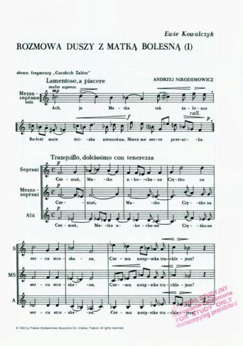 Partytura studyjna nie upoważnia do kopiowania i sporządzania głosów wykonawczych. W celu legalnego nabycia większej ilości partytur chóralnych, po preferencyjnych cenach dla zespołu, prosimy wysłać e-mail pod adres: handel@pwm.com.pl