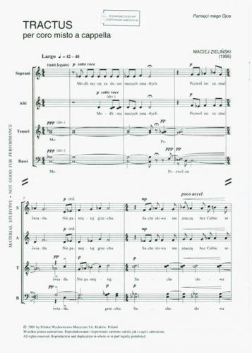 Partytura studyjna nie upoważnia do kopiowania i sporządzania głosów wykonawczych. W celu legalnego nabycia większej ilości partytur chóralnych, po preferencyjnych cenach dla zespołu, prosimy wysłać e-mail pod adres: handel@pwm.com.pl