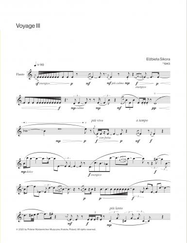 Utwór powstał w Paryżu w 1981 roku z okazji koncertu monograficznego w Cite internationale des arts zorganizowanego 24 maja 1982 roku, podczas którego po raz pierwszy został wykonany przez Pavla Foltyna, czeskiego flecistę przebywającego na stypendium we Francji. Wkrótce potem, podczas nagrywania muzyki instrumentalnej do radiowej opery Derriere son double, udało mi się namówić Lawrence’a Beauregarda, legendarnego flecistę zespołu Ensemble InterContemporain, żeby „przy okazji” nagrał też Voyage III. Po kilku minutach oglądania nut po prostu stanął przed mikrofonem i zagrał ten utwór prawie a vista, tak jakby znał go od dawna.